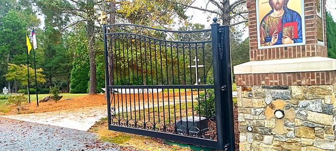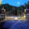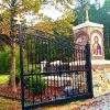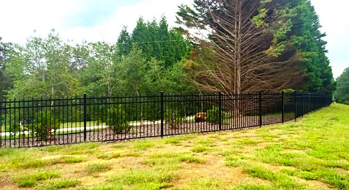 Custom iron driveway gate approximately 25 foot wide by 10 foot tall with iron fence panels and also 1720 feet of aluminum fencing installed