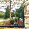Custom iron driveway gate approximately 25 foot wide by 10 foot tall with iron fence panels and also 1720 feet of aluminum fencing installed